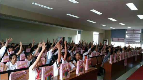在这样的愿景之下,2018年韦德1946在全国中小学开展“成长的翅膀”青春期初潮知识讲座活动,共计举办了2000多场,覆盖近100万的9-12岁年轻小女生。
